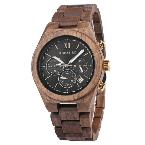 BOBO BIRD Oem venta al por mayor cliente logotipo privado reloj de madera con pequeño 3 agujas fecha pantalla Natural madera Oem relojes hombres